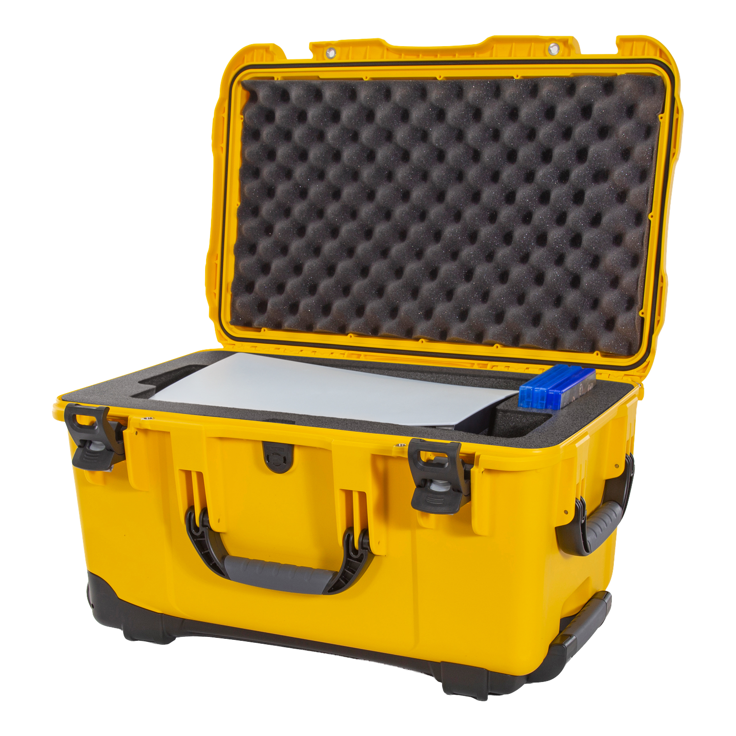 Built from NK-7 resin, the NANUK 938 is both lightweight and indestructible. Rounded corners and reinforced edges provide added protection against drops and shocks. Stainless-steel hardware, PowerClaw latches, and soft-grip handles guarantee reliability and ease of use.