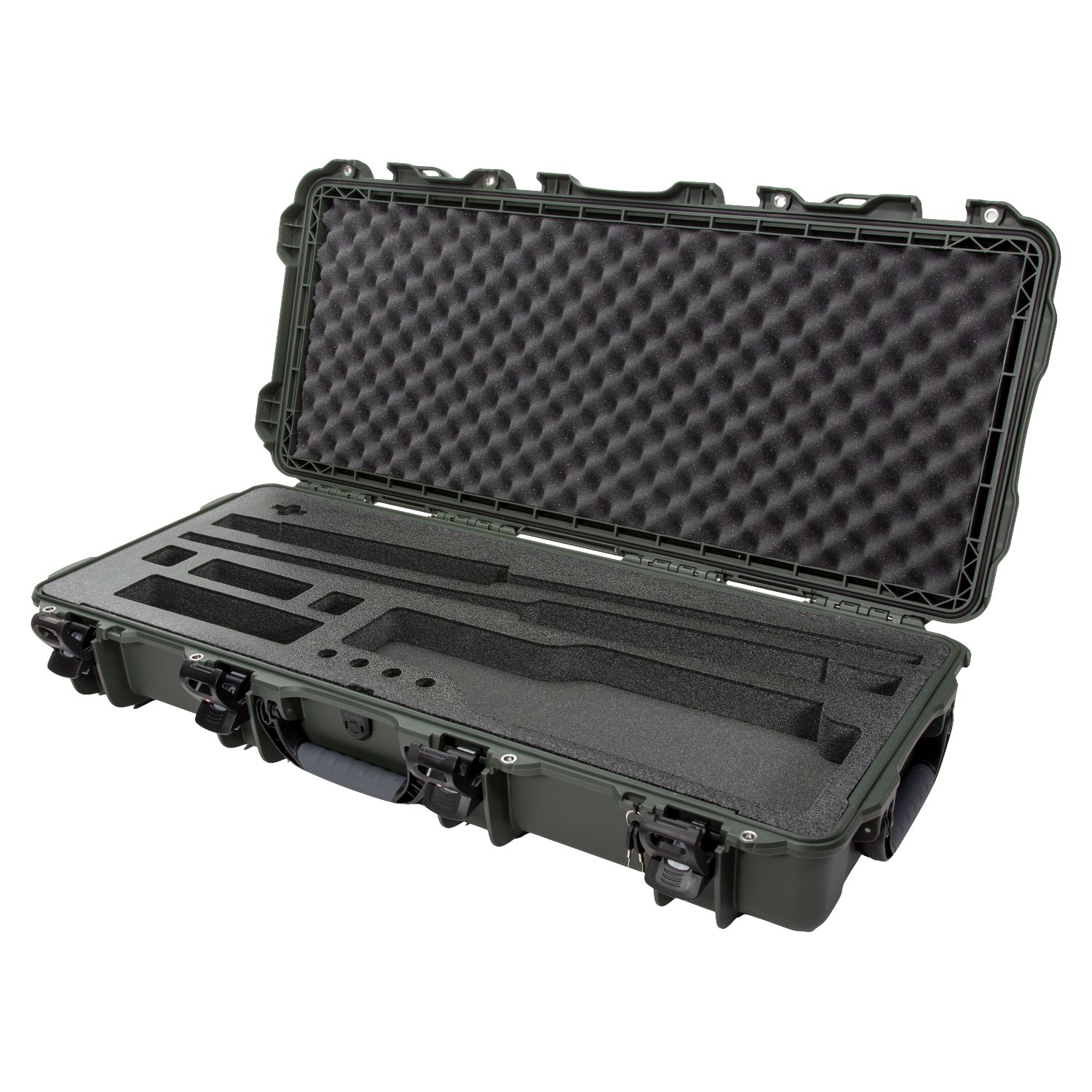 Soft-grip handles, a two-stage retractable handle, and durable polyurethane wheels make moving the NANUK 985 Takedown effortless. Ideal for hunters, law enforcement, and shooting enthusiasts who require secure, portable protection.